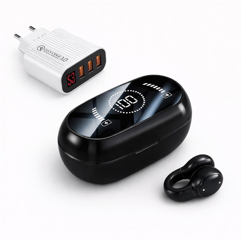 Căști Wireless Bluetooth 5.4 cu cutie de încărcare de culoare neagra – baterie 350 mAh, autonomie optimizată
