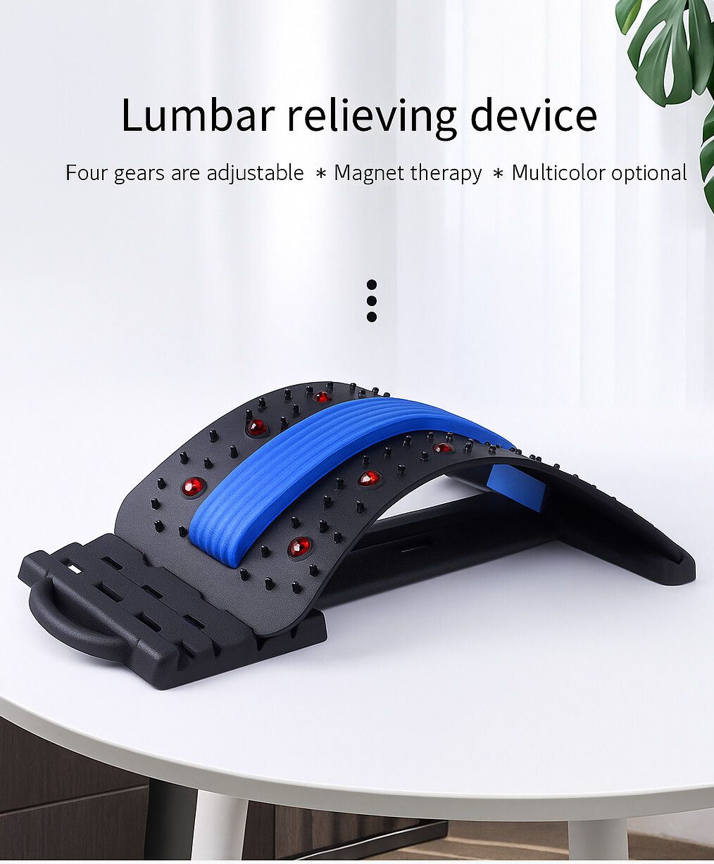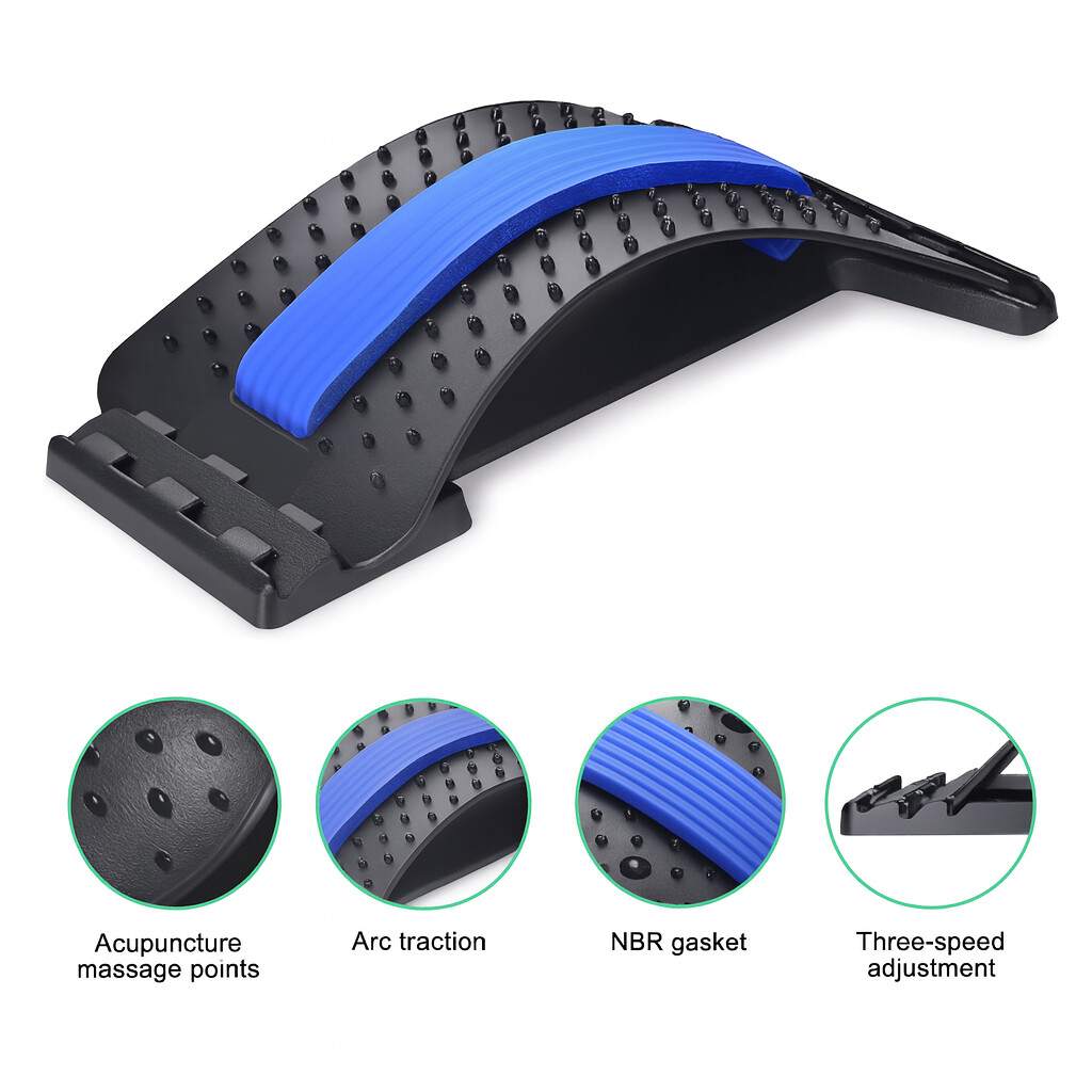 Dispozitiv profesional de întindere lombară cu presopunctură și magneți, 4 trepte reglare – Albastru